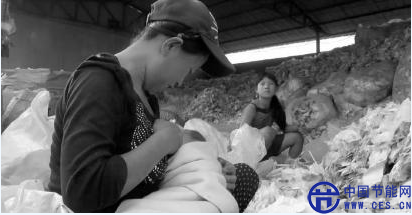 我還遇到一名彝族婦女因為沒錢去醫(yī)院生子,而是自己在垃圾場邊上生下孩子;我更親眼所見一名女工也是因為貧窮,而不得不在工廠外的菜田里生子,她就那樣坐在那里,嘴里咬著自己的辮子。而生子不過10天,便繼續(xù)廢料分揀工作,孩子餓了,就在垃圾中給孩子喂奶。