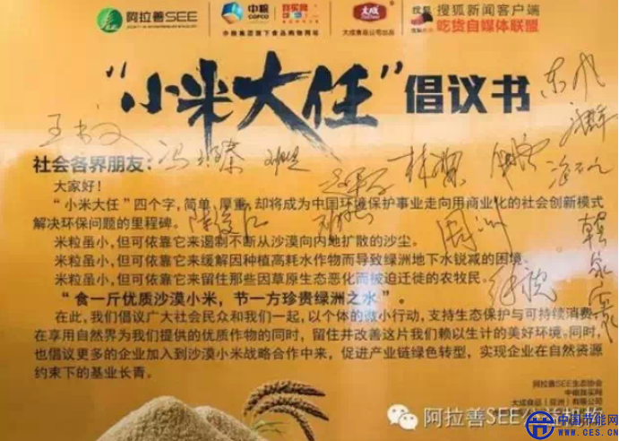 “任小米”代言人,阿拉善SEE生態(tài)協(xié)會會長任志強說,代言小米因為它是個公益的事情,是對子孫后代都有益的環(huán)境保護的事情,因此我們要努力的去做。但是,“任小米”收獲了大量贊的同時,也有質(zhì)疑的聲音問道,為什么在沙漠缺水地區(qū)還要種小米,是否更加浪費水資源而破壞環(huán)境?