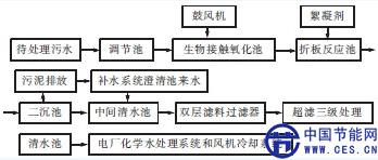 (1) 污水流量小(50~500t /d) ,可生化性好,可采用生物膜法處理技術(shù)和物化深度處理技術(shù)相結(jié)合的方式處理。