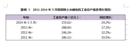 2014年1-5月,我國稀土永磁電機行業(yè)工業(yè)總產(chǎn)值達到了155.62億元,同比增加了24.2%。2013年,我國稀土永磁電機行業(yè)的工業(yè)總產(chǎn)值達到了288.60億元,同比增加了17.2%,