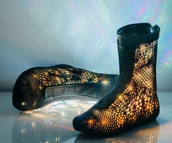 這樣定制出來的鞋子到底長什么樣?根據放出的效果圖,是否好看見仁見智。鞋子的外面是皮革,不過皮革里面植入了運動傳感器,而腳踝區(qū)域將裝上3D打印的硅膠氣囊,能夠通過充氣和放氣的改變支撐力度。更令人印象深刻的是,鞋子上還安裝了色彩感應攝像頭和RGB LED,可以根據穿戴者的衣著改變不同的顏色。