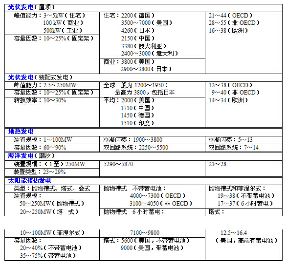 表中提及的平準(zhǔn)化成本(Levelized Cost of Energy,LCOE)是指采用非化石燃料發(fā)電如太陽能發(fā)電、生物質(zhì)發(fā)電等在生命周期內(nèi)的價格。