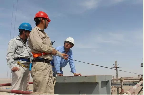 夏季的中午,戈壁的地表溫度最高可達(dá)60多度,中午12點(diǎn)到下午5點(diǎn)無(wú)法施工,我們只好“早出早歸、晚出晚歸”。