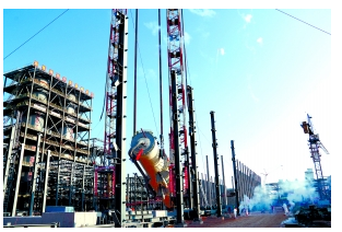 圖為神華寧夏煤業(yè)集團(tuán)年產(chǎn)400萬噸煤炭間接液化示范項目。該項目總投資550億元,計劃2016年建成投產(chǎn)。 (本報記者曲照貴提供)