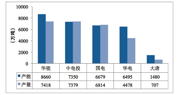 2014年五大發(fā)電集團(tuán)煤炭產(chǎn)能產(chǎn)量