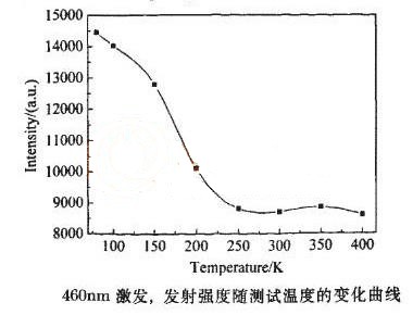 溫度在影響熒光粉的活性的同時,也對熒光粉所激發(fā)的光波波長產(chǎn)生一定的影響,下圖是溫度對熒光粉的發(fā)光波長的影響。