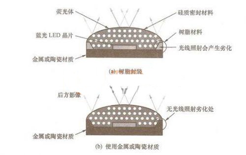 針對白光LED的長壽化問題,目前LED廠商采取的對策是變更密封材料,同時(shí)將熒光材料分散在密封材料內(nèi),可以更有效地抑制材質(zhì)劣化與光線穿透率降低的速度。