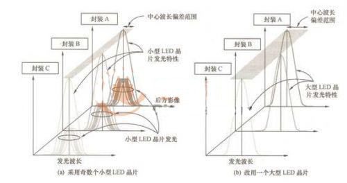 圖6 利用多個(gè)小型LED芯片的組合提高發(fā)光波長均勻性