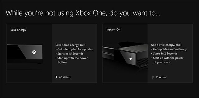 微軟最近公布的一個Xbox One使用政策中,在其首次開機使用時,會允許用戶選擇是節(jié)能待機還是快速啟動待機兩種待機模式,以應(yīng)對近期環(huán)保組織美國自然資源保護協(xié)會對于Xbox One能耗的質(zhì)疑。