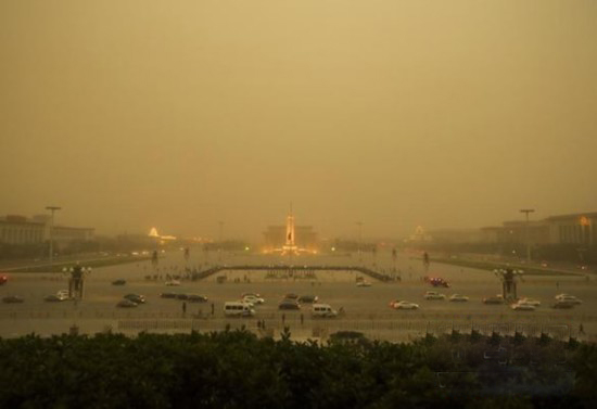 15日傍晚的北京,讓人難忘。幾分鐘之內(nèi)天氣就變黃了,能見度小于1000米,一瞬間的黃沙漫天,讓人有種電影《星際穿越》里世界末日的即視感。據(jù)北京市氣象臺(tái)統(tǒng)計(jì),這是2002年3月20日之后,北京時(shí)隔13年再次出現(xiàn)沙塵暴。各種社交圈里的溫馨提示層出不窮,“今夜別加班,早點(diǎn)回家”。北京、河北、新疆、遼寧等北方地區(qū)有揚(yáng)沙或浮塵,局地沙塵暴。