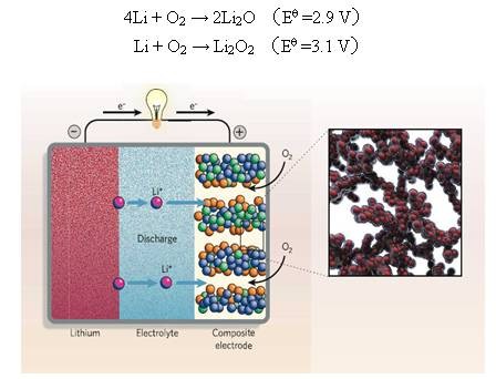 眾所周知鋰-空氣電池兩個(gè)最大的問(wèn)題是效率低以及不能多次充放電。當(dāng)鋰離子和氧氣發(fā)生反應(yīng)生成鋰氧化物時(shí),鋰空氣電池產(chǎn)生電流。而鋰-空氣電池的充電過(guò)程則涉及到該反應(yīng)的逆反應(yīng)--鋰氧原子間的化學(xué)鍵斷裂,并且釋放氧氣。致命問(wèn)題在于生成的鋰氧化物會(huì)覆蓋在電池電極上,從而隔絕了電極與催化劑的接觸,進(jìn)而減緩反應(yīng)進(jìn)程。