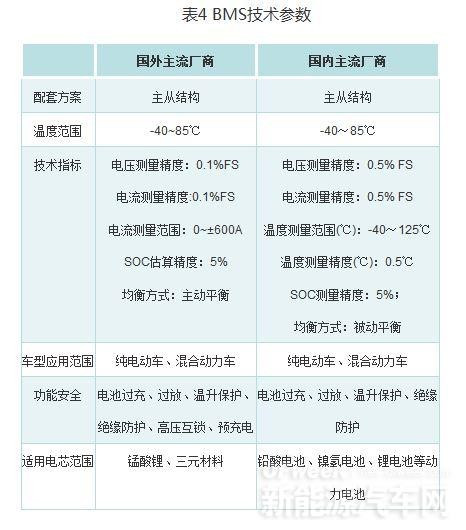 下表為國(guó)內(nèi)外主流 BMS供應(yīng)商的技術(shù)參數(shù),代表著B(niǎo)MS的發(fā)展動(dòng)態(tài)。