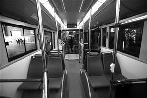 車輛采用的是低地板,進入車廂,感覺空間要寬敞很多。記者身邊一位高個的中年男士說,“一米八站著,都完全沒壓力。”