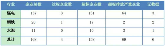 江蘇僅4家企業(yè)達(dá)標(biāo)排放 對(duì)2014年江蘇省煤電、鋼鐵、水泥三個(gè)行業(yè)共168家廢氣重點(diǎn)國(guó)家監(jiān)控企業(yè)的每小時(shí)廢氣排放數(shù)據(jù)進(jìn)行了數(shù)據(jù)調(diào)查,結(jié)果顯示: