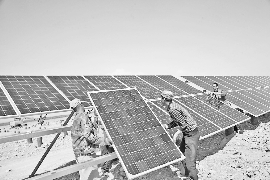 4月28日,工人在烏什縣重工業(yè)園區(qū)龍柏能源投資有限公司一期20兆瓦光伏發(fā)電項(xiàng)目區(qū)安裝光伏發(fā)電板。該項(xiàng)目總投資18000萬(wàn)元,運(yùn)行期年平均上網(wǎng)電量2620萬(wàn)千瓦時(shí)。該項(xiàng)目的建成,將為促進(jìn)烏什縣經(jīng)濟(jì)社會(huì)發(fā)展注入新的活力。