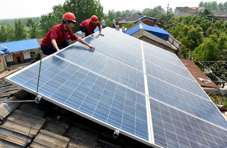 4月29日,在肥西縣山南鎮(zhèn)金牛社區(qū),工作人員在為一戶殘疾人家庭安裝光伏設(shè)備。為提高農(nóng)村貧困殘疾人家庭收入,安徽省肥西縣投資60萬元,為山南鎮(zhèn)、高店鄉(xiāng)20戶貧困殘疾家庭免費(fèi)安裝3kW小型戶用光伏電站。預(yù)計5月上旬,這20個小型戶用光伏電站將正式并網(wǎng)發(fā)電,除滿足自家用電需求外,多余電量將出售給國家電網(wǎng)。據(jù)悉,肥西縣旨在通過“光伏下鄉(xiāng)扶貧工程”,充分利用農(nóng)村貧困殘疾人戶屋頂資源,建設(shè)家庭分布式光伏發(fā)電站,探索幫助他們脫貧解困的新路子。