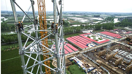 4月28日,電建工人在世界首座交直流合建特高壓變電站進(jìn)行1000千伏輸電鐵塔安裝。1000千伏淮南~南京~上海特高壓交流工程泰州變電站是特高壓北環(huán)工程,該工程動態(tài)投資19.86億元,2014年12月開工建設(shè),預(yù)計2016年3月建成投運(yùn)。工程投運(yùn)后,將建成世界首個區(qū)域交流特高壓環(huán)網(wǎng)工程,輸電能力每年新增300萬千瓦,江蘇過江通道輸電能力由現(xiàn)在的900萬千瓦提高到1600萬千瓦。該工程是世界首座交直流合建特高壓變電站,變電站容量3000兆伏安,變電站容量世界第一,同時也是世界第一個分層接入的特高壓變電站。