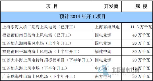1、預(yù)計(jì)2014年開(kāi)工海上風(fēng)電項(xiàng)目