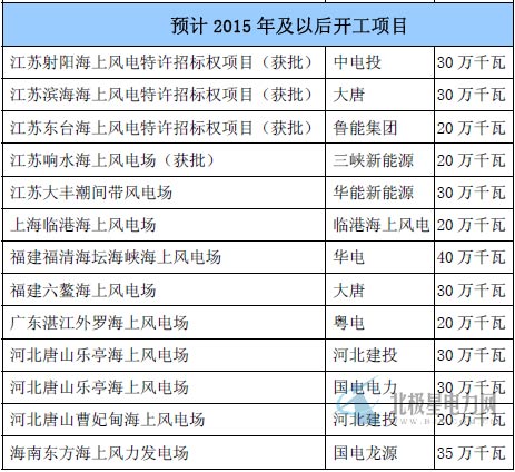 2、預(yù)計(jì)2015年及以后開(kāi)工海上風(fēng)電項(xiàng)目