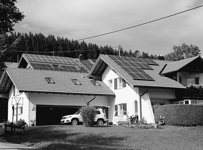 德國(guó)的太陽能發(fā)電設(shè)施多數(shù)是屋頂太陽能。圖為巴伐利亞州一個(gè)屋頂太陽能設(shè)施。