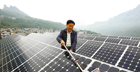 5月8日,建始縣景陽鎮(zhèn)居民向登軒在自家樓頂光伏發(fā)電站清掃太陽發(fā)電板。向登軒是湖北恩施州首個家庭光伏發(fā)電站業(yè)主,他的這座家庭電站兩年來已發(fā)電16000多度。