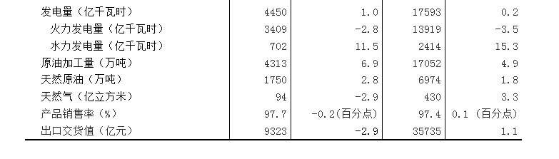分產(chǎn)品看,4月份,565種產(chǎn)品中有290種產(chǎn)品同比增長(zhǎng)。其中,鋼材9641萬(wàn)噸,同比增長(zhǎng)3.4%;水泥20865萬(wàn)噸,下降7.3%;十種有色金屬417萬(wàn)噸,增長(zhǎng)9.7%;乙烯123萬(wàn)噸,下降7.6%;汽車209.6萬(wàn)輛,下降0.3%;轎車96.6萬(wàn)輛,下降11.2%;原煤29802萬(wàn)噸,下降7.4%;發(fā)電量4450億千瓦時(shí),增長(zhǎng)1.0%;原油加工量4313萬(wàn)噸,增長(zhǎng)6.9%。