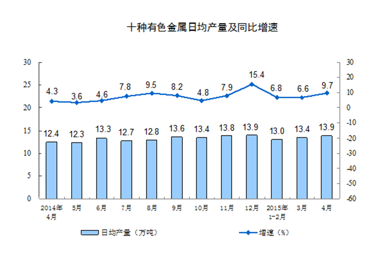 根據(jù)十種有色金屬、汽車、轎車產(chǎn)量歷史數(shù)據(jù)的修訂結(jié)果,分別對(duì)2014年4月至2015年1-2月十種有色金屬、汽車、轎車的日均產(chǎn)量進(jìn)行了修訂。