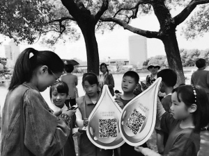 5月10日上午,市青少年宮的“節(jié)水宣傳員”邀請(qǐng)市民用手機(jī)掃二維碼,了解水知識(shí)。