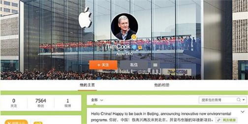 5月11日15點(diǎn)06分,新入駐新浪微博的蘋果公司CEO蒂姆˙庫克發(fā)出了第一條微博,這條中英雙語的消息不僅沒有網(wǎng)友期待的“轉(zhuǎn)發(fā)就送iphone6”,還出乎意料地宣布了蘋果公司的中國新環(huán)境項(xiàng)目。