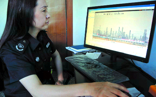 米東區(qū)環(huán)保局工作人員通過(guò)污染源在線監(jiān)測(cè)系統(tǒng)查看轄區(qū)企業(yè)的煙氣排放情況。