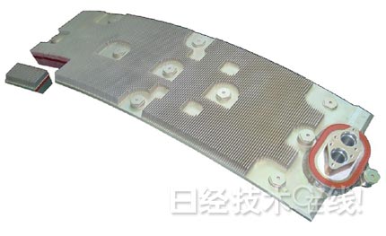 舉例來說,住友精密工業(yè)正準備開發(fā)利用鋁和單層CNT合成的復合材料,計劃將其用于飛機發(fā)動機和電動油壓設備上安裝的熱交換器(下圖)。CNT的傳熱性好,散熱性是普通鋁的4倍。因此可以制造出輕巧、小型的熱交換器,提高飛機的燃效。