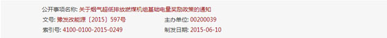 關于煙氣超低排放燃煤機組基礎電量獎勵政策的通知