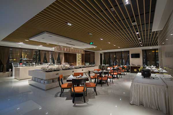 餐飲區(qū)的照明根據(jù)餐飲方式而有所區(qū)別。在案例中,品上照明根據(jù)餐飲方式選配不同照明產(chǎn)品,極力營造餐飲環(huán)境,滿足顧客身心需求。在自助餐飲區(qū),餐桌、物品擺放區(qū)為重點照明區(qū)域,品上照明選用顯色指數(shù)高達95的格柵射燈,還原食物本色,增加食欲。