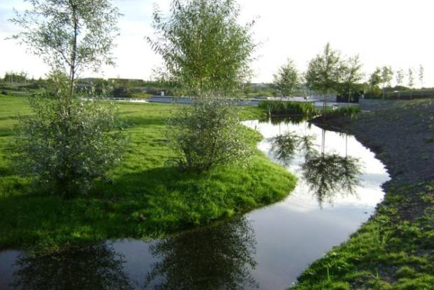 由于當(dāng)?shù)氐叵滤惠^高,kronsberg城區(qū)是漢諾威重要的地下水儲(chǔ)存地,這也是漢諾威政府一直遲遲沒有在kronsberg城區(qū)進(jìn)行建設(shè)的原因之一。該項(xiàng)目提出了“近自然的水管理”概念和方法,目標(biāo)是通過一些接近自然的排水方式盡可能的將雨水就地滯留并下滲,最大可能的減少流失量,讓城區(qū)的雨水流失量和地下水保持在未開發(fā)前的狀態(tài)。