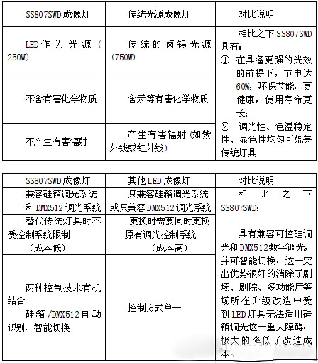 下圖為雅江SS807SWD成像燈與傳統(tǒng)光源成像燈、其他LED成像燈優(yōu)缺點對比: