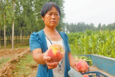 在此種桃的村民韓少青的妻子也告訴記者,從去年10月份開始,緊鄰承包地的大沙河突然漲水,河水最終將河堤沖垮,黑褐色的河水將附近農戶的幾十畝承包地淹沒。通往韓少青家桃園唯一的道路也被淹了,種的桃子不能大量運出,只能眼睜睜地看著一些熟透的桃子變爛。