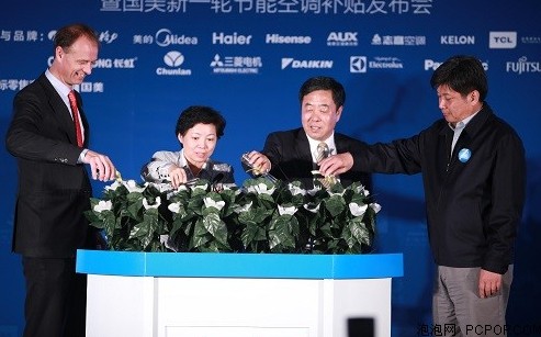 由國美電器主辦的以“節(jié)能空調(diào)選擇綠色 環(huán)保理念深入生活”為主題的“全球環(huán)境基金節(jié)能房間空調(diào)器推進(jìn)項目零售激勵計劃啟動暨國美新一輪節(jié)能空調(diào)補(bǔ)貼方案發(fā)布會”在北京召開。全球環(huán)境基金節(jié)能房間空調(diào)器推進(jìn)項目有關(guān)部門、機(jī)構(gòu)代表以及國美電器總裁王俊洲與國內(nèi)主要空調(diào)企業(yè)領(lǐng)導(dǎo)共同出席了此次會議。會上,環(huán)保部環(huán)境保護(hù)對外合作中心、聯(lián)合國開發(fā)計劃署與國美電器共同宣布全球環(huán)境基金節(jié)能房間空調(diào)器推進(jìn)項目零售激勵計劃正式啟動,該項活動的啟動實施,將為提高節(jié)能綠色空調(diào)產(chǎn)品的市場普及率,推動解決我國目前突出的能源環(huán)境問題提供有力保障。