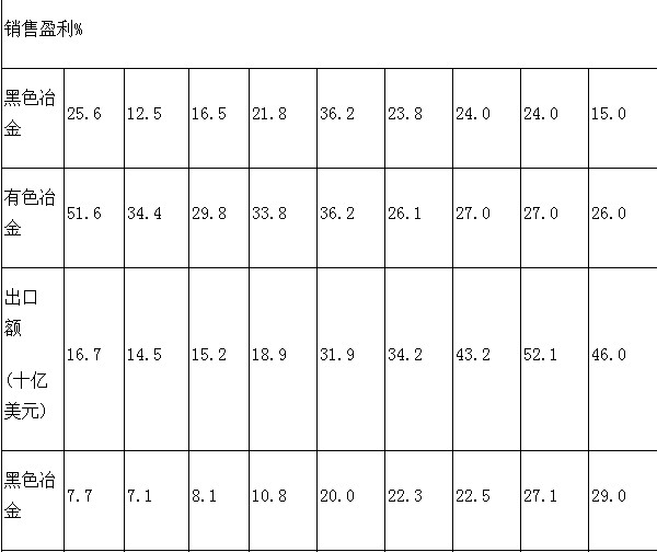 2000-2006年,冶金工業(yè)出口額從167億美元增長到432億美元,增長了158%,進(jìn)口額從40億美元增長到117億美元,增長了193%。這七年來,俄羅斯冶金工業(yè)一直保持貿(mào)易順差,但進(jìn)口增速快于出口。由此可以判斷,俄羅斯國內(nèi)冶金產(chǎn)品相對(duì)緊缺。