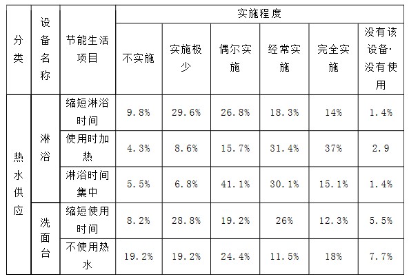 (1)32.3%的調查對象會主動縮短淋浴時間;68.4%的調查對象習慣于在淋浴時進行加熱。有12.3%的調查對象表示很少甚至不會集中家庭成員的沐浴時間。