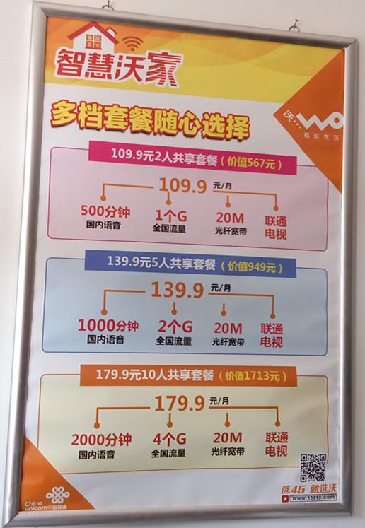 聯(lián)通微山島營業(yè)廳內(nèi)主打套餐