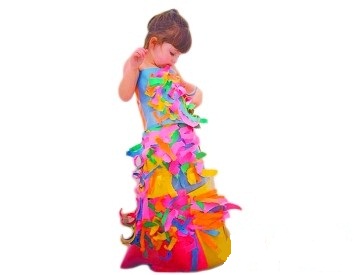 和“星二代”不一樣的是,這個(gè)小姑娘穿的并非什么大牌或定制,而是和媽媽一起用紙做成的衣服。