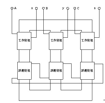 基于三相磁平衡技術(shù)的配電系統(tǒng)節(jié)電器的核心是一種帶有鐵芯和多繞組的特殊接線的自耦變壓器。變壓器的鐵芯采用反“z”型連接,見(jiàn)圖1,使三相繞組產(chǎn)生的磁場(chǎng)相互迭加來(lái)平衡三相電壓,實(shí)現(xiàn)對(duì)供電系統(tǒng)的優(yōu)化配置,均衡三相電源,消除雜波干擾。這種特殊繞組,可以相互補(bǔ)償鐵芯的磁通量,最大限度地控制各相感應(yīng)電動(dòng)勢(shì)的一致性,從而保持三相平衡,降低零線電流等額外損耗,達(dá)到節(jié)電的目的。