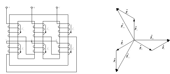 圖1 “z”型接法原理圖 圖2 電勢(shì)星形圖