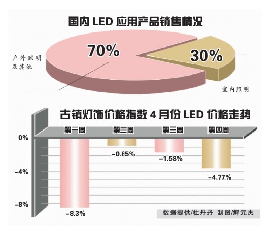 由此LED 應(yīng)用產(chǎn)品呈現(xiàn)高速增長(zhǎng)態(tài)勢(shì),且在各展會(huì)、企業(yè)生產(chǎn)推介會(huì)等季節(jié)性活動(dòng)中受到熱捧。不過(guò)LED 產(chǎn)品銷售主要還是集中在戶外照明和商業(yè)照明,中山的LED 企業(yè)也基本以這兩塊市場(chǎng)為主。