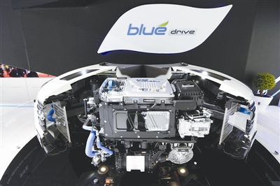 在今年第十六屆上海國際汽車展上展出的新能源汽車動力電池。