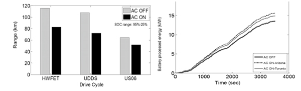 對電動汽車另一個影響就是氣候,主要是夏天和冬天的影響。夏天的時候需要開冷空調(diào),冬天的時候開冷空調(diào),而且在寒冷氣候的條件下,電池本身的放電的能力就會有一定的衰減,而為了讓電池工作在比較適宜的溫度,本身也需要一定的電能來維持電池的工作溫度。