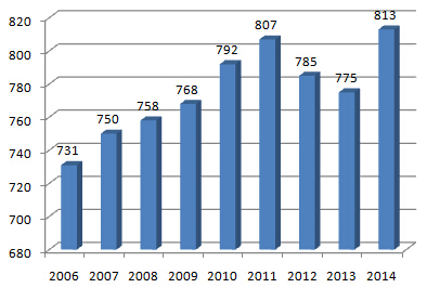 2006-2014年我國廢污水排放量統(tǒng)計圖