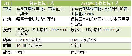 2. 污水處理廠原位提標改造技術優(yōu)勢對比
