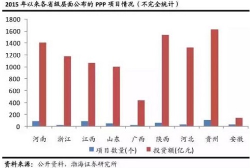 同時(shí),在地方層面上,政府推廣運(yùn)用PPP模式以降低債務(wù)風(fēng)險(xiǎn)、推進(jìn)城市基礎(chǔ)設(shè)施建設(shè)、保障公共服務(wù)供給、穩(wěn)定經(jīng)濟(jì)增長(zhǎng)等愿意強(qiáng)烈,主動(dòng)性和積極性較高,各地政府陸續(xù)出臺(tái)PPP推廣意見等政策,并加快推介PPP項(xiàng)目,今年年初至今僅河南、安徽、浙江等9省所公布的示范或試點(diǎn)項(xiàng)目就超過480個(gè),總投資額近1萬億。