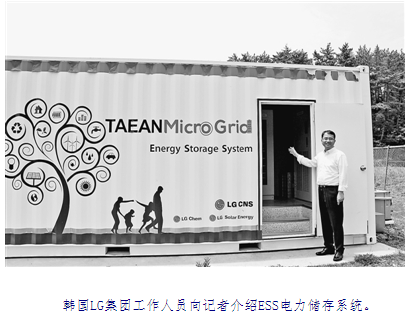 形似集裝箱的ESS系統(tǒng)坐落在變電站旁,負(fù)責(zé)發(fā)電所管理的方炳善所長對記者說,ESS系統(tǒng)共有54塊電池,電力供給狀態(tài)可以通過網(wǎng)絡(luò)實(shí)時(shí)監(jiān)控,用手機(jī)可以隨時(shí)掌握。這一系統(tǒng)是由LG集團(tuán)旗下的LG CNS公司架設(shè)的,而電池板則來自LG電子,存儲電池則是由LG化學(xué)生產(chǎn)。該集團(tuán)實(shí)現(xiàn)了產(chǎn)業(yè)價(jià)值鏈的構(gòu)筑。